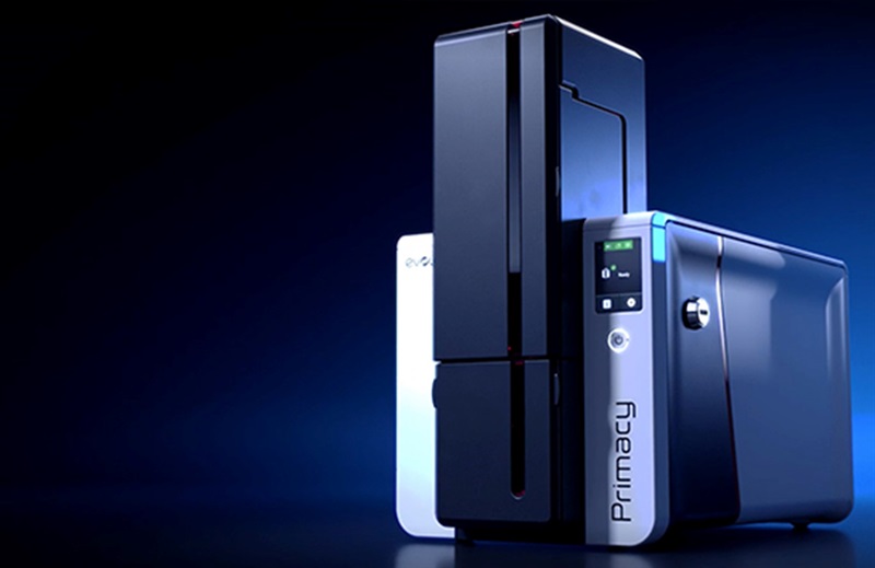 Evolis Primacy personaliserer på få sekunder dine plastkort - foruddesignede eller blanke hvide plastkort i 4-farve eller monokromt. Print foto, tekst, stregkoder og logoer med denne smarte Primacy fra Evolis. Bedste køb, når der stille krav til miljø. ID-kort, medlemskort, loyalitetskort, gæstekort, studiekort, bibliotetskort, reklamekort og meget meget mere...